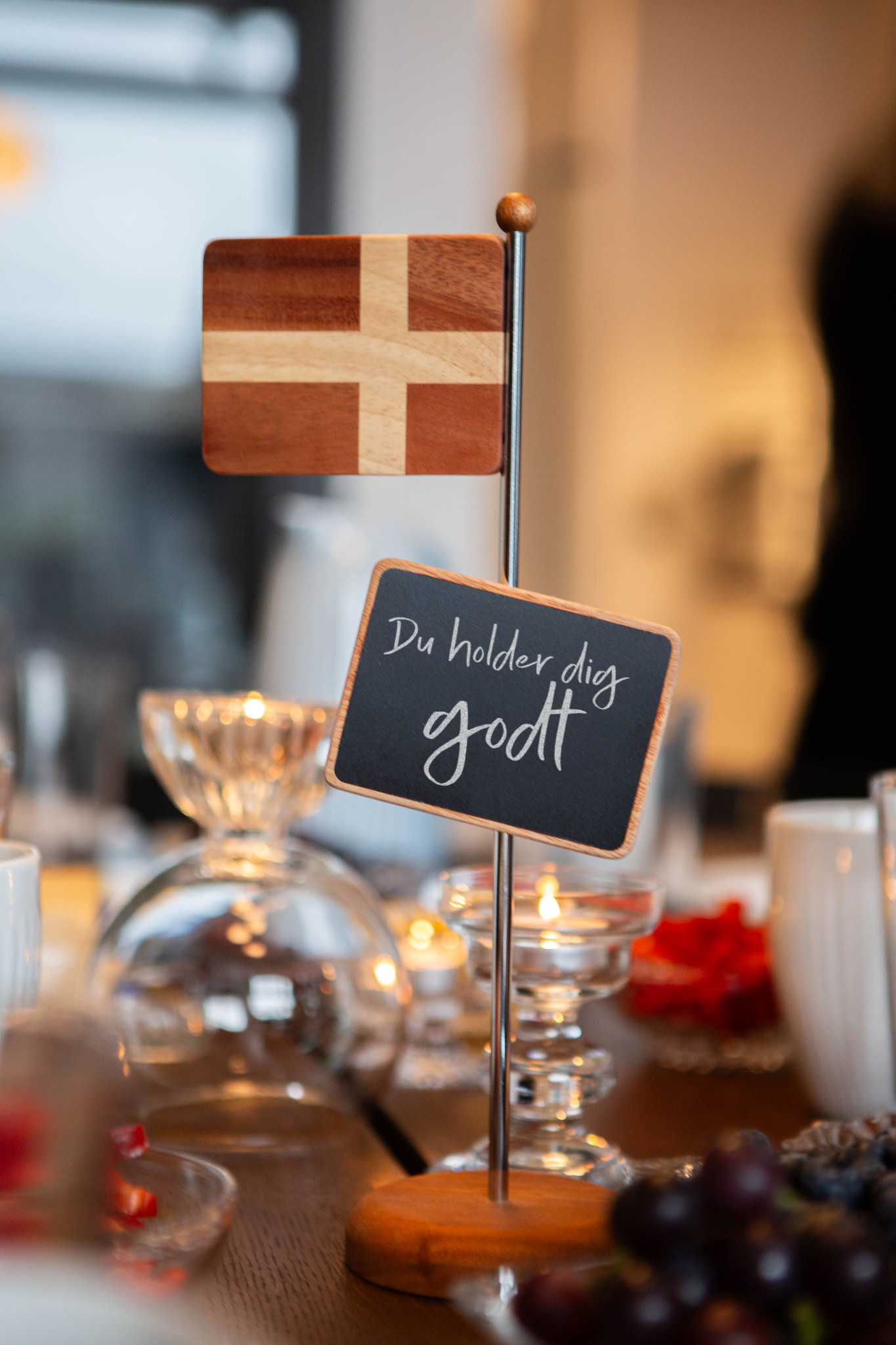 Bordflaget er også den oplagte gave til bryllup, dåb, konfirmation eller andre fejringer. Tavle og kridt medfølger, når du køber bordflaget.