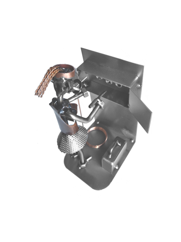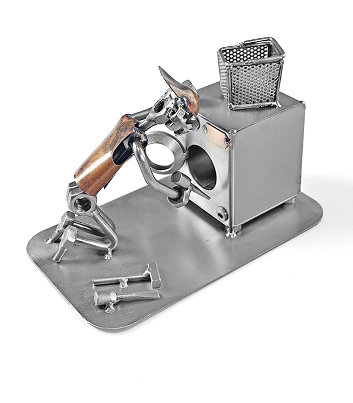 Er vaskemaskinen gået i baglås? Denne unikke metalfigur fanger hverdagens helt – håndværkeren, der får teknikken til at køre igen.